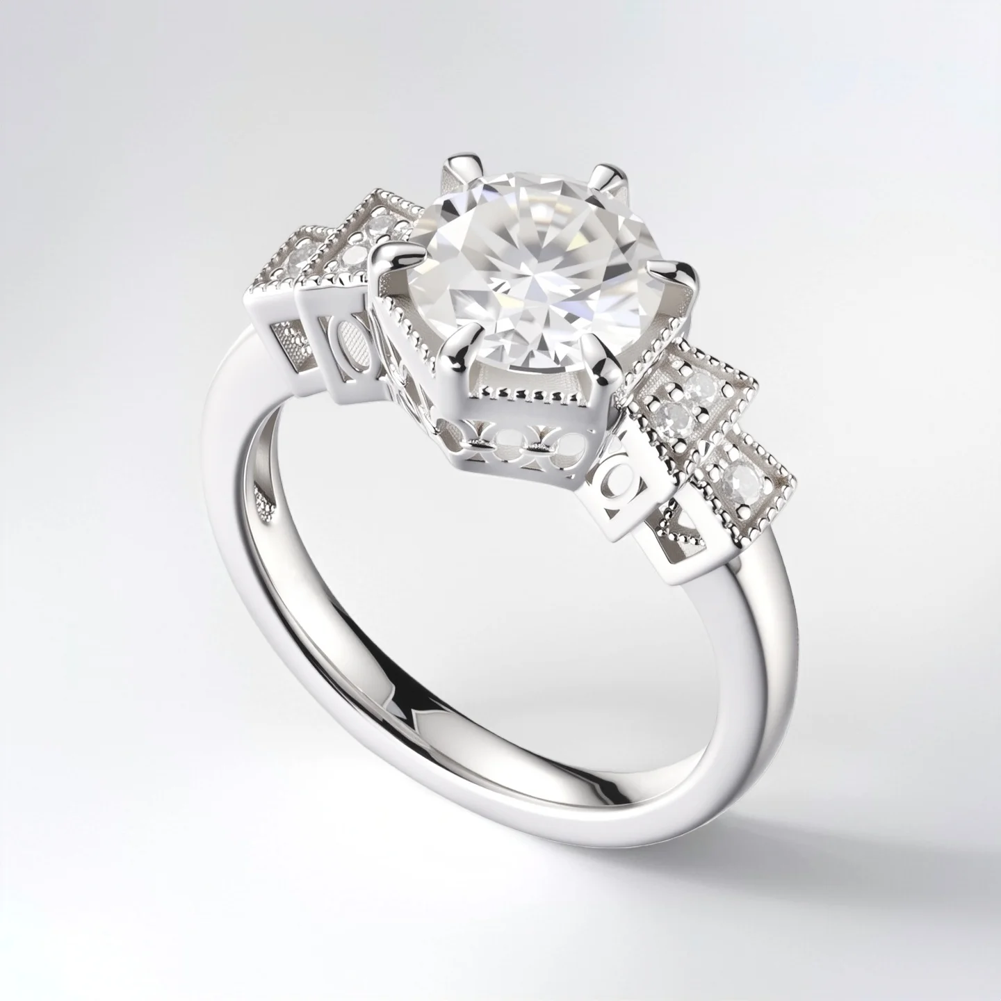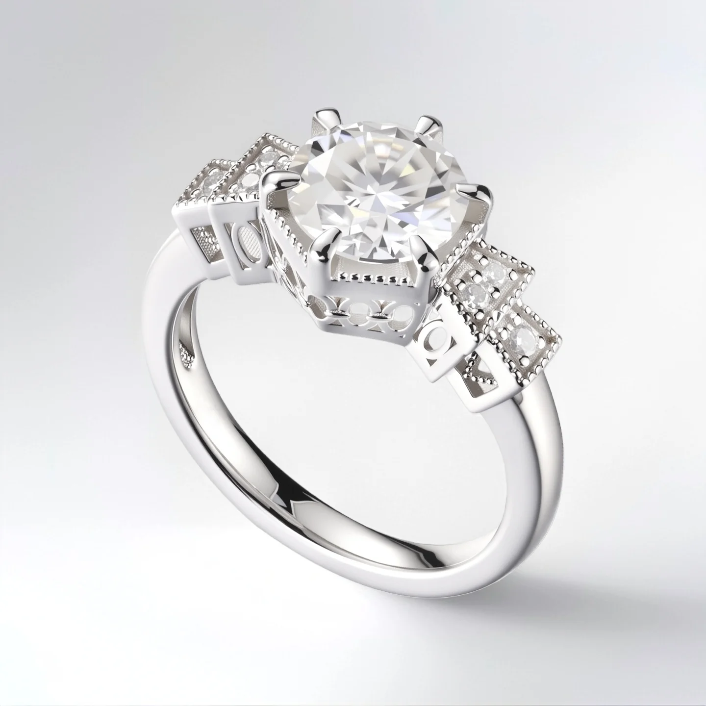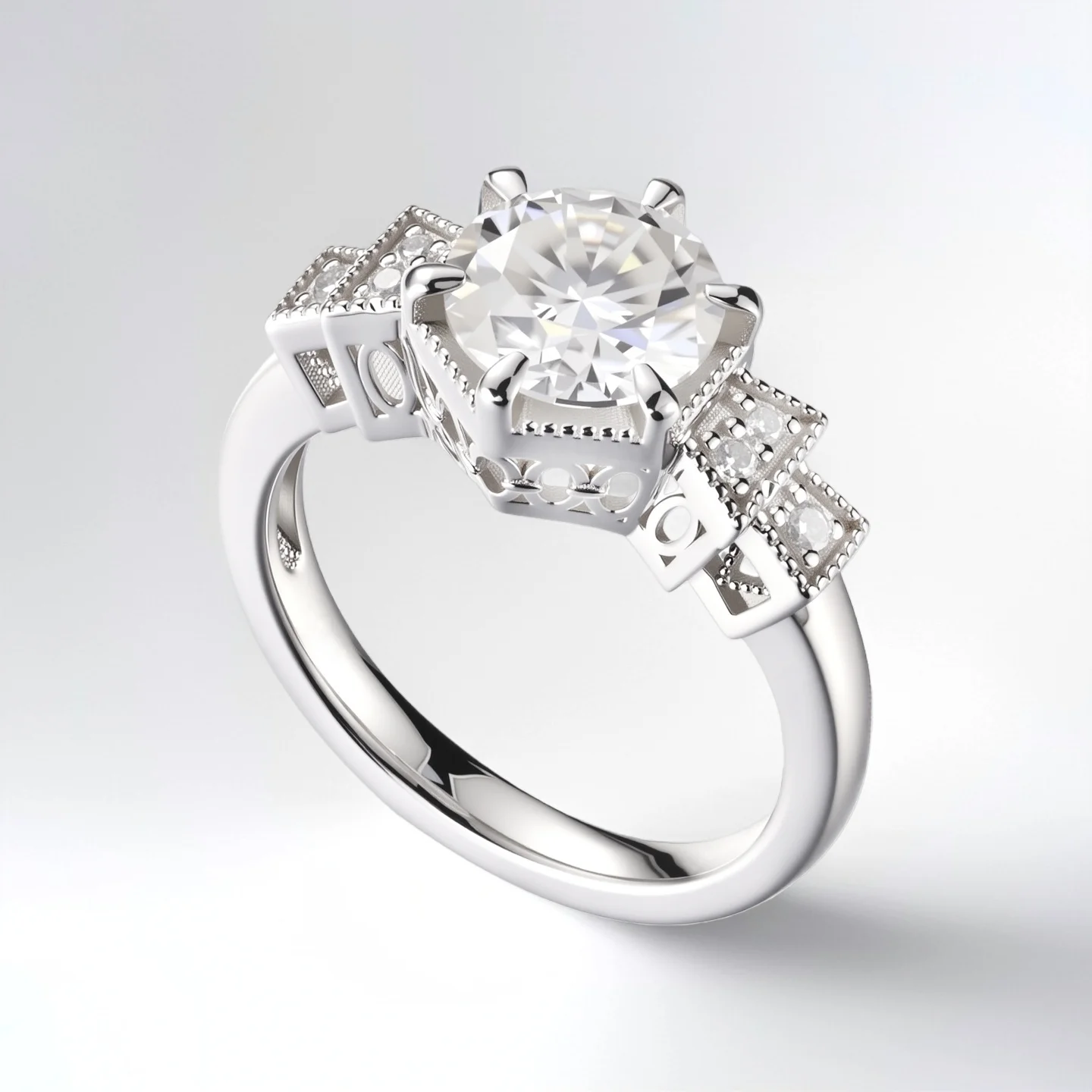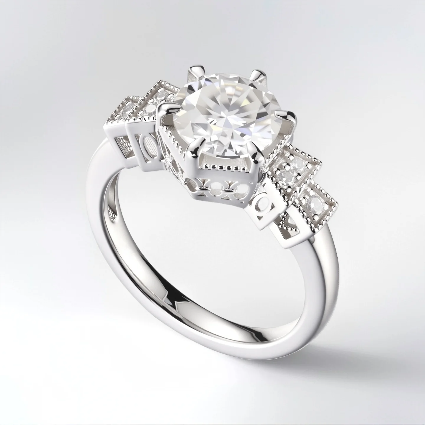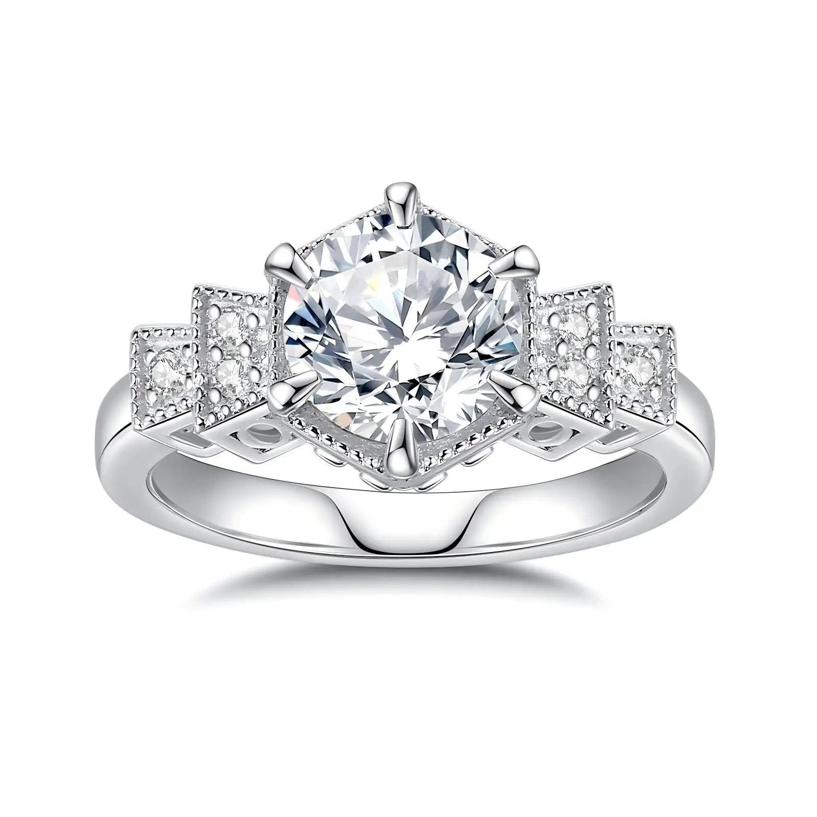 Diamond Engagement Ring Band with Pave Side Stones Unique 6-Prong Setting Luxury Bridal Jewelry